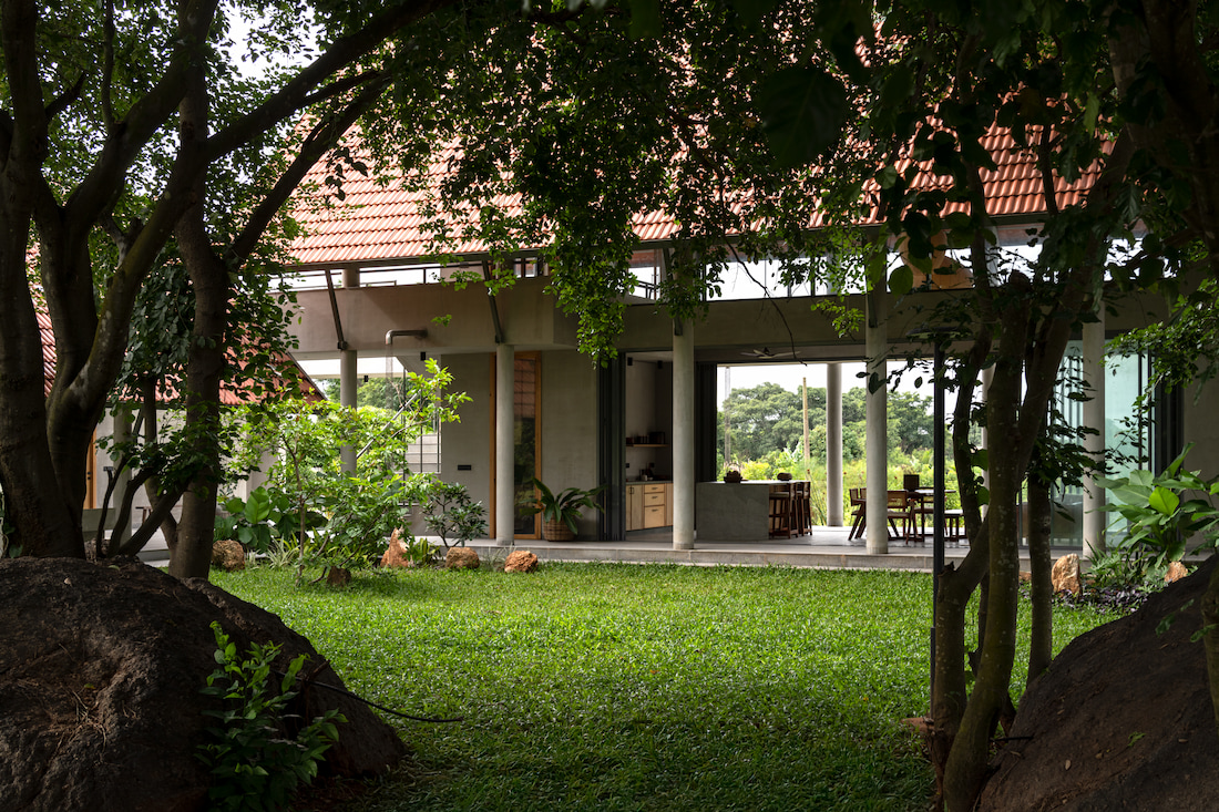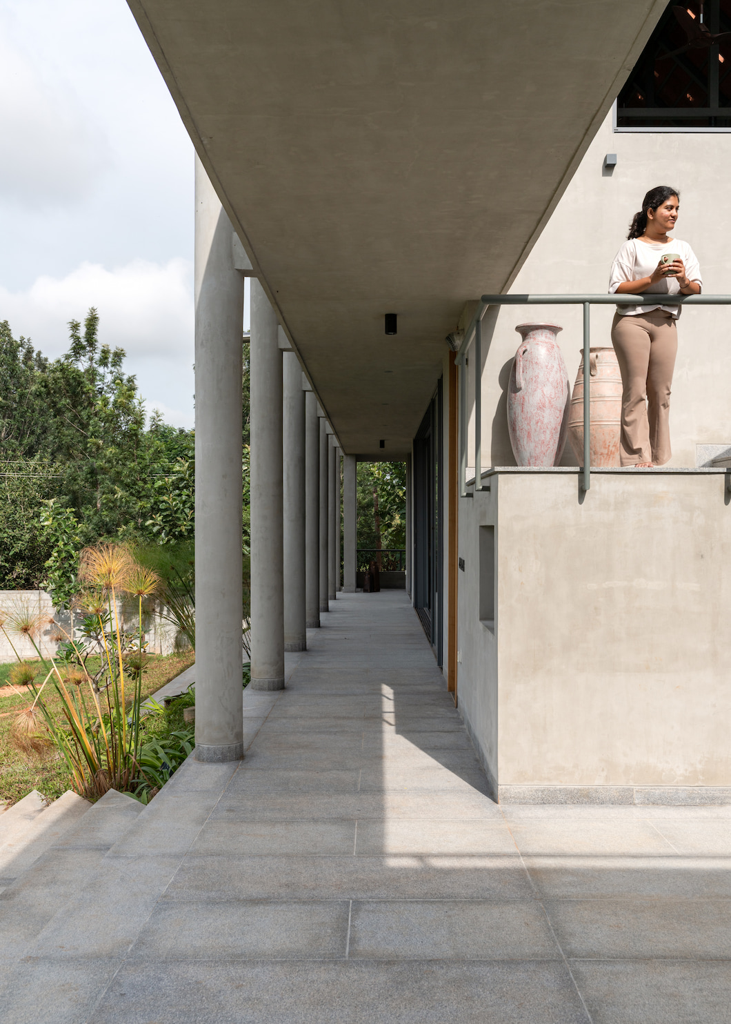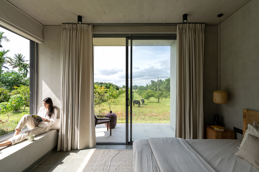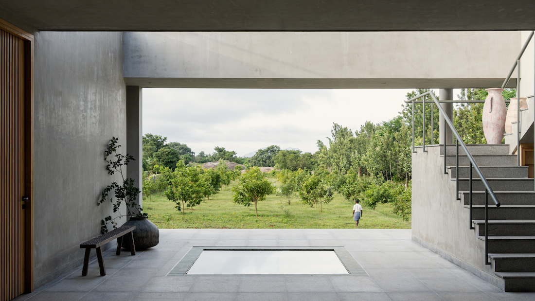 Rooted in contextual sensibilities, House by the Grove, also known as KAVU, fosters a quiet synergy between people, space, and nature. Envisioned as a weekend retreat for a family of three, the residence is set within the tranquil landscape of Magadi on the outskirts of Bengaluru. Nestled on a sprawling two - acre site, the house occupies a modest footprint that embraces an existing grove of trees and boulders — emerging as a mindful counterpoint to the city’s expanding urban fabric